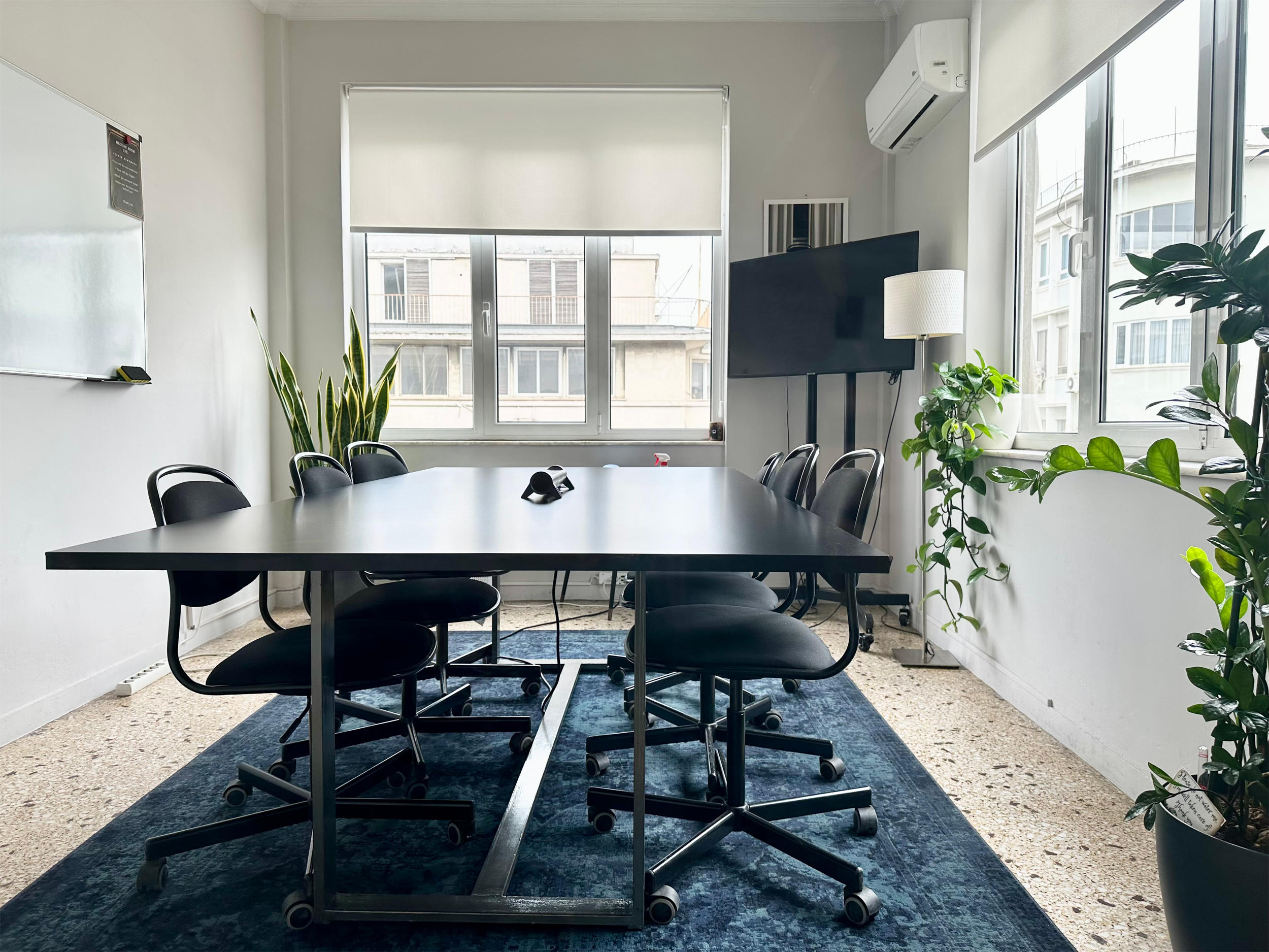 Fully equipped with a TV screen or projector, flip charts, whiteboard, conference microphones, and autonomous air conditioning.
